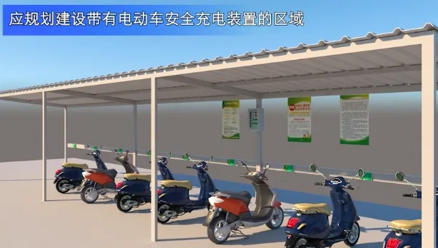 问:社区电动车棚安装有哪些安全要求???? 如距离水泵房、、、、高压配电房,,,,弱电机房(包括与居民楼的距离)等