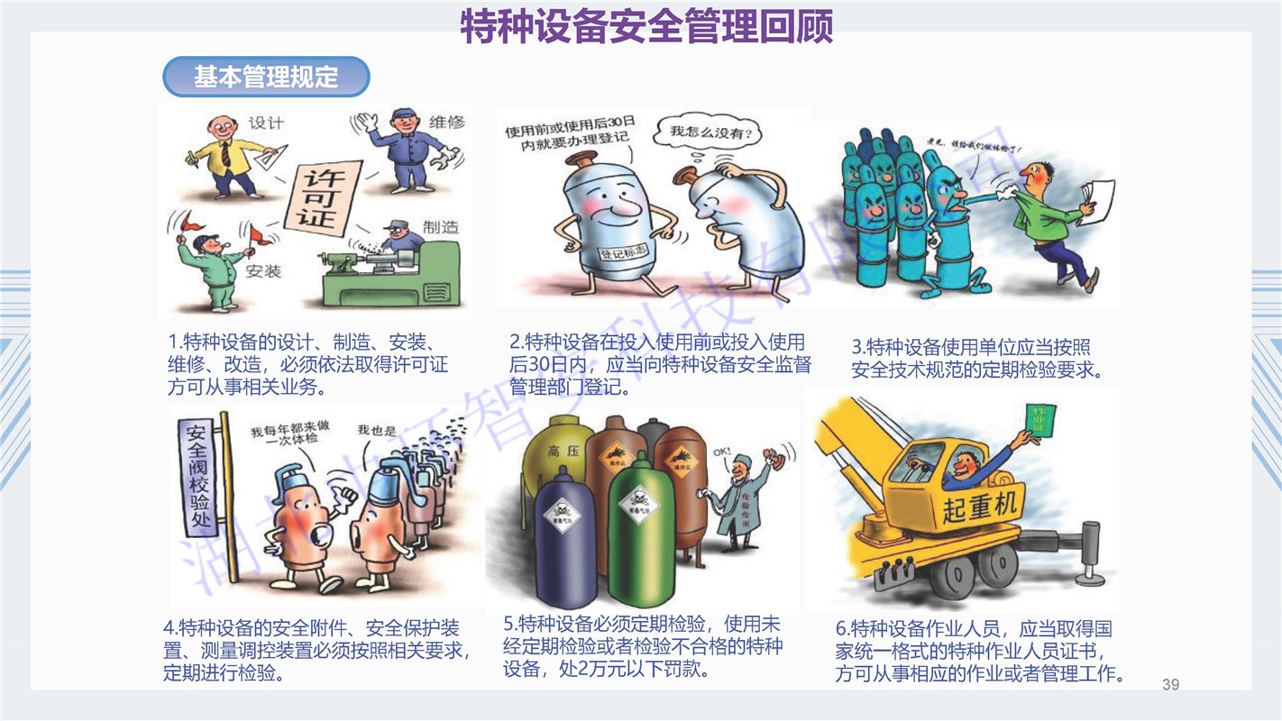 特种设备因其在高温、、高压、、、、高空、、、高速条件下运行的特点,,在生产和生活中应特别关注其安全。。。。为提高大家对特种设备的认知、、、促进特种设备操作安全,,我公司特组织了一次特种设备安全知识学习,,系统总结了不同特种设备安全管理要求、、、安全使用要求,,,下面来和小智一起回顾一下吧!!!!